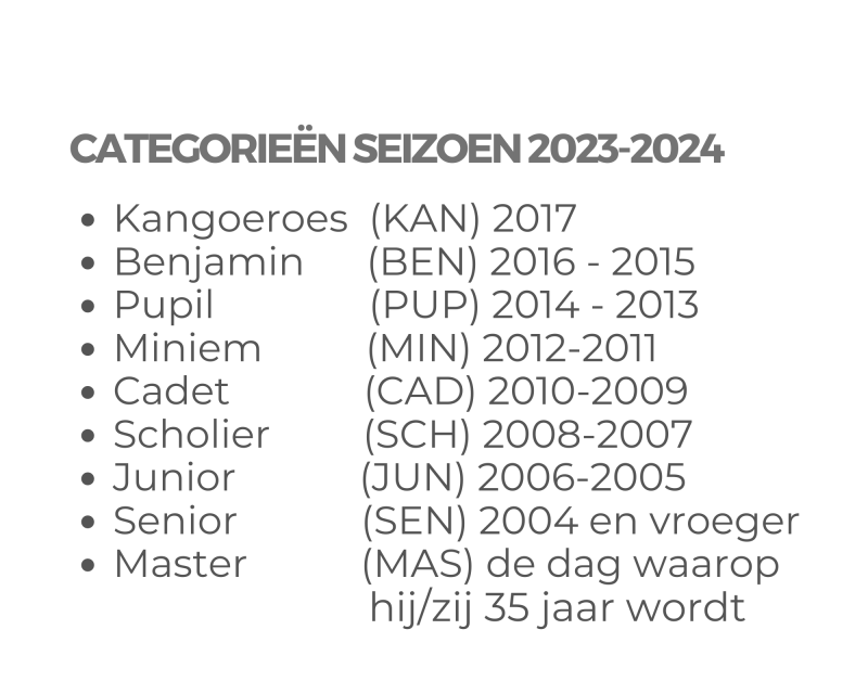 | 18u - 19u | Miniemen + Cadetten t.e.m. masters | |